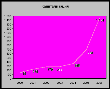 1 453 млн. долларов США, что соответствует росту относительно капитализации на конец 2005 года (699 млн. долларов США) в 2 раза.