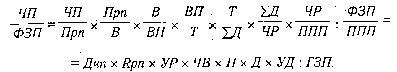 Следовательно, для детерминированного факторного анализа абсолютного отклонения по фонду повременной зарплаты используют следующую модель: