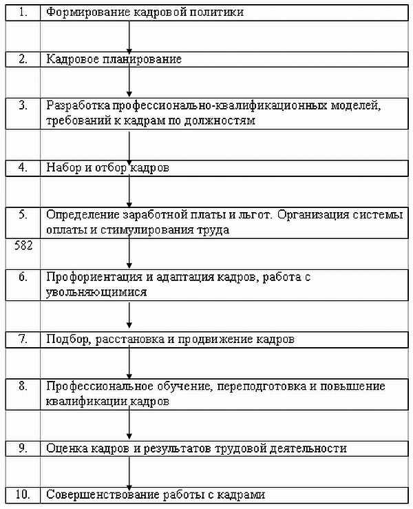 | Правовое и информационное обеспечение процесса управления персоналом | Правовое регулирование трудовых отношений. Учет и статистика персонала. Информирование коллектива по кадровым вопросам. Совершенствование кадровой политики. |