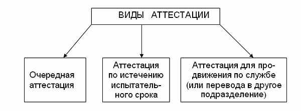 - аттестация по истечению испытательного срока - имеет целью получение документированного вывода по результатам аттестации, а также аргументированных рекомендаций по дальнейшему служебному использованию аттестуемого;