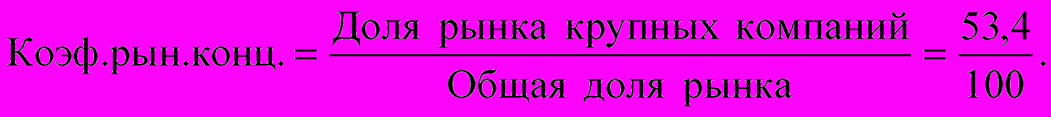 Чтобы было понятно, как они рассчитываются, приведем формулу расчета коэффициента рыночной концентрации (формула 4) и определим с ее помощью положение на нашем рынке [4].