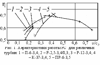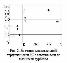 зменение нагрузки ПТУ определяется режимом работы РС. При этом меняются парциальность ε и характеристическое отношение u/c0=x, во многом определяющие экономичность РС и последующих СД. С целью выбора области проводимых исследований были проанализированы режимные характеристики РС турбин, выпускаемых КТЗ (рис. 1).К