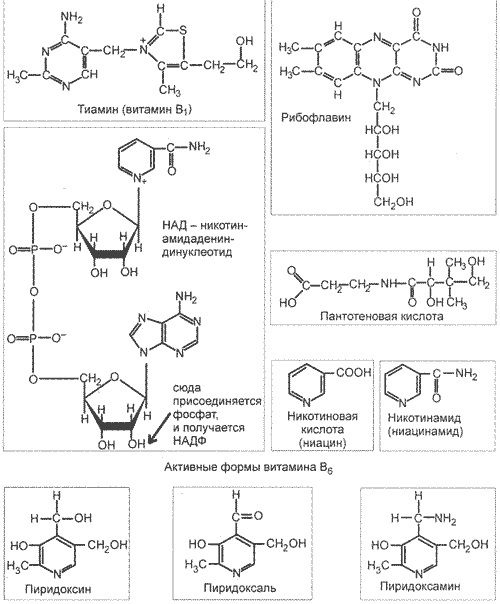 3.3.8.8 Витамины – «амины жизни». Это название придумал польский биохимик Казимир Функ, выделив вещество, предотвращающее болезнь бери-бери, и выяснив, что оно обладает свойствами амина. Позже выяснилось, что даже такой, чисто формальный признак – и тот не работает: аминогруппа есть не у всех витаминов, хотя у большинства она всё же имеется (рисунок 3.7).