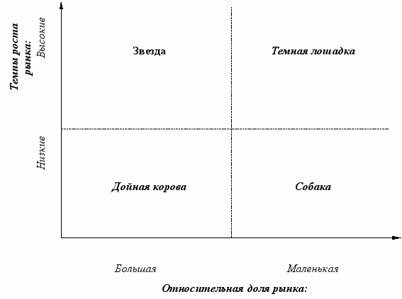 «Темные лошадки». Элементы бизнеса, имеющие небольшую долю быстрорастущих рынков. Они требуют большого количества средств даже для поддержания своей доли рынка, не говоря уже об ее увеличении. Руководству следует тщательно продумать, каких «темных лошадок» стоит превратить в «звезды», а какие поэтапно ликвидировать.
