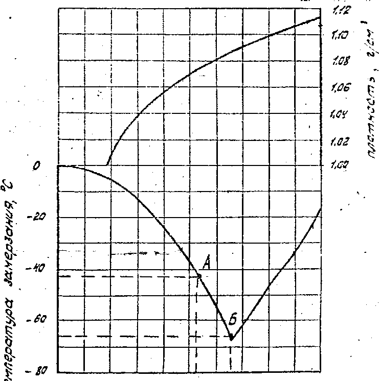 По приведенной плотности ρ20 определяют состав и температуру замерзания антифриза, пользуясь графиком на рис. 13.