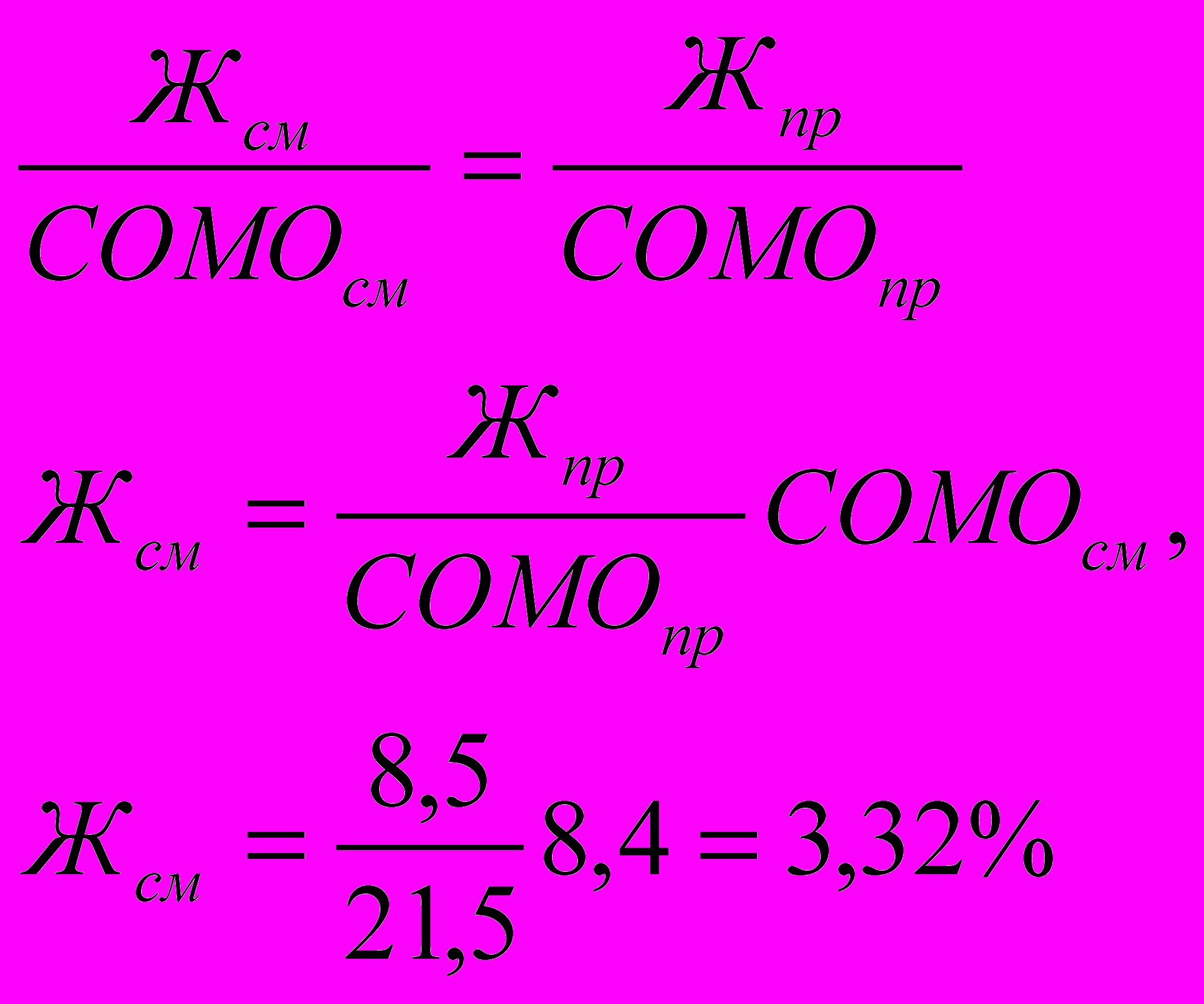 СОМОпр = 100--Bпр-Жпр-Caxпр 100-26,5-8,5-43,5 = 21,5 %,