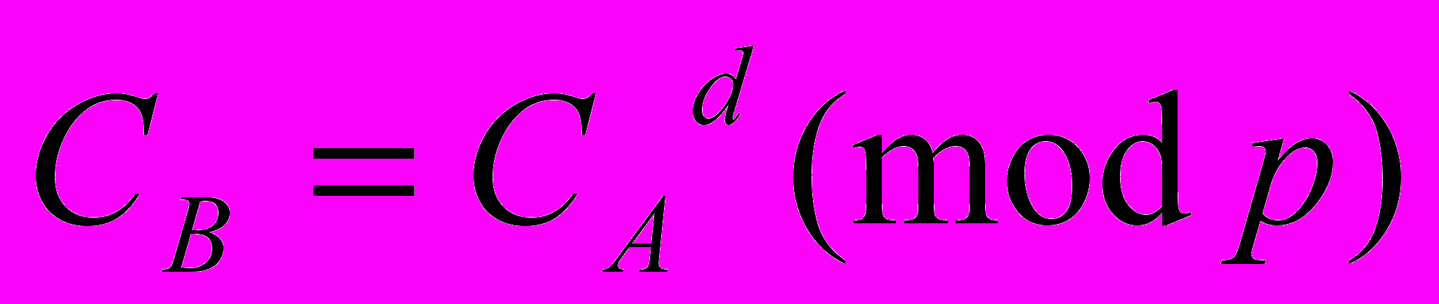, получатель В также генерирует случайное число d из интервала {1, p}. 2. Отправитель А шифрует сообщение ключом е в виде