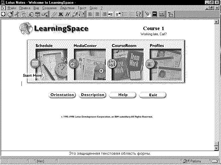 Студент начинает изучение курса, обращаясь к Расписанию, чтобы узнать последовательность изучения разделов курса. Преподавателю, с моей точки зрения, удобнее начать работу над курсом с Медиа Центра и скомпоновать в этой базе необходимые учебные модули. Щелчок левой клавиши мыши по значку