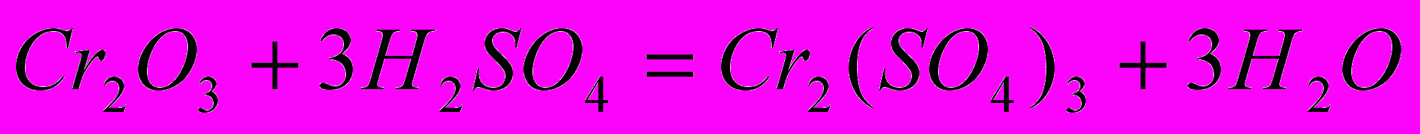 — тугоплавкое вещество зеленого цвета, является амфотерным оксидом, в воде нерастворим.Оксид хрома (III) растворим в кислотах и щелочах. При сплавлении с щелочами образуются растворимые в воде соли хромистой кислоты — хромиты: