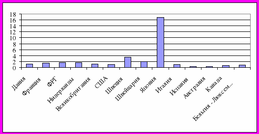 В 1980 г. объем международной купли – продажи ценных бумаг (акций и облигаций) резидентами “большой семерки” составлял 7,2 % ее совокупного ВВП, в 1990 г. – 68,5%, а в 1995 г. – уже 166% (тогда, как объем внешнеторгового оборота этих семи стран в том же году составлял 36% их ВВП).