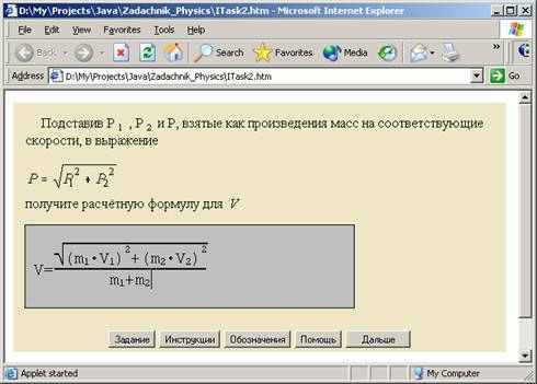 Для иллюстрации материала были разработаны апплеты, демонстрирующие действие различных физических законов и явлений. При этом используются реальные формулы и законы, что обеспечивает их адекватное моделирование (рис. 11.2).