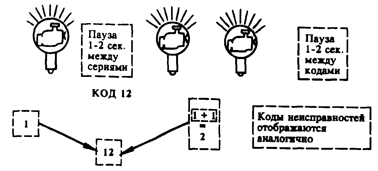 Рис. 12. Сигнализация кода 12 контрольной лампой "CHECK ENGINE".