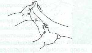 - Разминание стопы. Поместите стопу между ладонями и делайте руками вращательные движения.