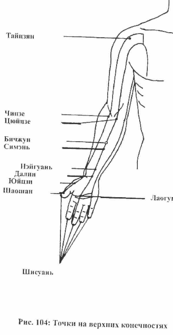 (н) Цигунмассаж Направьте ци в Нижний Данътянъ, а затем в точку Нэйлуогун. Высвободите ци в этой точке и наложите ее на болезненный участок или точку, намеченную для лечения. После этого задача лечения достигнута.
