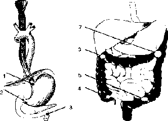 Между тем желудок легко смещается вниз (гастроптоз). Надежнейший связочный механизм перекашивается, что ведет к смене взаиморасположения и остальных органов живота Смещен-. ный орган сдавливает своих соседей, а они -его. Сдавливаются вены, вызывая венозный застой, отек, дистрофические и другие процессы. Отекает и приоткрывается привратник, возникают эрозии и язвы. Поэтому при гастроптозах люди жалуются на невыраженные боли в животе и запоры. В брюшной полости образуются спайки, которые, постоянно нарушая венозный кровооток, создают замкнутый круг болезни.