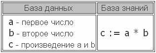 Пример 2. Даны числа a и b. Найти произведения этих чисел. Записать базу данных и базу знаний.