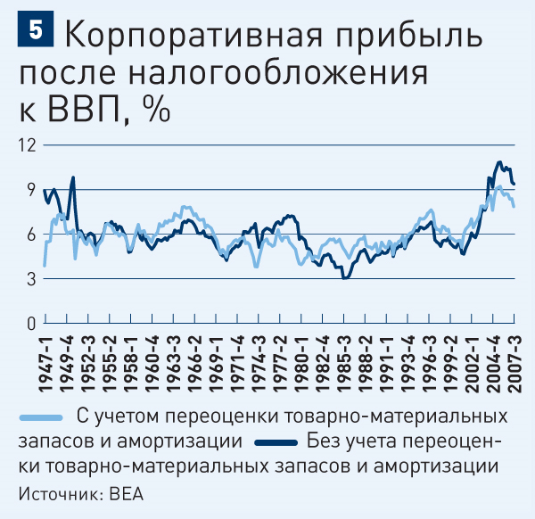 Получается, что ожидаемое резкое замедление американской экономики и вызванное этим ухудшение финансовых результатов американских компаний должно умерить аппетиты инвесторов в отношении ожидаемой доходности на акции. Однако противовесом здесь выступает второй фактор – процентные ставки. В чем их важность? В том, что они определяют стоимость долларов, которые инвесторы ожидают получить в будущем в качестве дохода. Чем ниже ставки, тем выше приведенная стоимость будущих поступлений. Американские власти агрессивно их снижают, пытаясь снять дефицит ликвидности и стимулировать рост национальной экономики (ставка по федеральным фондам с начала года была срезана с 4,25 до 1%). Учитывая серьезность постигшего мировую экономику кризиса, ставки еще долго будут оставаться на низком уровне. А это обстоятельство благоприятствует инвестициям в акции. Главное условие – в момент покупки они должны находиться в зоне недооцененности (перепроданности), где их внутренняя стоимость оказывается значительно выше рыночной. Кроме подхода Баффета, ориентирующегося на отношение капитализации к ВВП, популярна среди аналитиков и FED valuation model, предложенная экономистом Эдом Ярдени. Сравним доходности десятилетних казначейских облигаций с ожидаемой доходностью акций по индексу S&P 500 (earnings yield). Последний показатель является обратной величиной для коэффициента цена/прибыль (price/earnings ratio). В состоянии равновесия доходность по десятилетним бондам должна соответствовать ожидаемой доходности на акции. Появление же разницы указывает на недооцененность или переоцененность рынка. Итак, прогнозная величина фактической прибыли на акцию для компаний, входящих в индекс S&P 500, на текущий год составляет $48,9 (таблица). 17 ноября индекс закрылся на отметке 850 пунктов. Таким образом, коэффициент P/E для него равняется 17,38 (850/$48,9). Ожидаемая доходность акций в этом случае составляет 5,75% (1/17,38). Рост индекса до 900 пунктов приведет к снижению earnings yield до 5,43%. Зная, что доходность десятилетних бондов на 17 ноября находилась на уровне 3,7%, вычисляем разницу. Она составляет около двух процентных пунктов, что позволяет делать вывод о недооцененности фондового рынка. Сама разница – не что иное, как рисковая премия. В период бычьего рынка она принимает отрицательные значения. В марте 2000 го, накануне коллапса, earnings yield составляла 3,9%, тогда как десятилетние гособлигации приносили 6,3% ((6) и (7)). Сегодня ситуация противоположная. Сильное падение рынка на фоне сравнительно неплохих корпоративных прибылей способствует увеличению рисковой премии. Схема действий, подсказываемая описанной выше моделью, проста: если S&P earnings yield больше treasury yield, инвесторам пора избавляться от гособлигаций и переходить в акции: они недооценены. И наоборот. Имея инвестиционный горизонт, такой же удаленный, как у Уоррена Баффета, можно с ним согласиться в том, что рынок сейчас недооценен и акции являются выгодным приобретением. Однако, если ваш горизонт меньше, чем вечность (именно так для себя его определяет «оракул из Омахи»), нужно помнить: хотя рынок всегда возвращается к своему нормальному уровню, в состоянии сильного иррационального отклонения он может находиться сколь угодно долго. Кстати, Уоррен Баффет отнюдь не последний оставшийся на рынке оптимист. Об этом говорит статистика по нетто-притоку средств в 