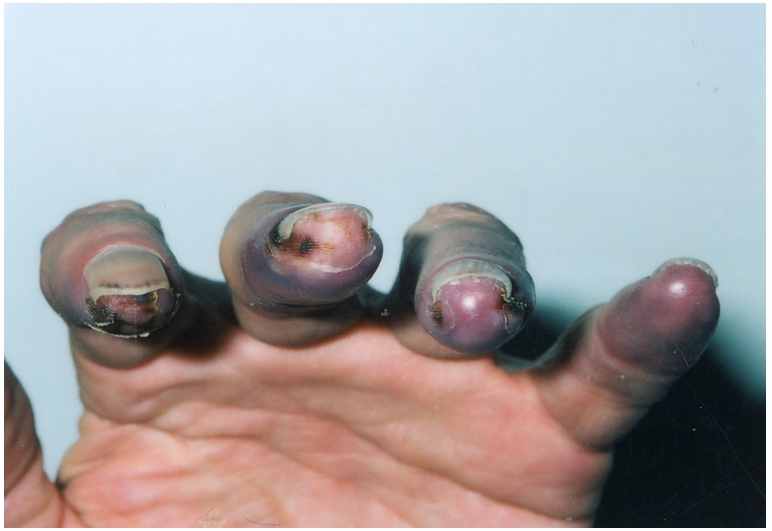 - рентгенологічно: періостози довгих трубчастих кіс-ток, акроостеоліз;