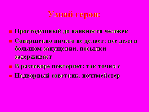 План урока Актуализация опорных знаний. Словарная работа. Мастерство характеристик действующих лиц. Составление и обсуждение таблицы «Чиновники города»