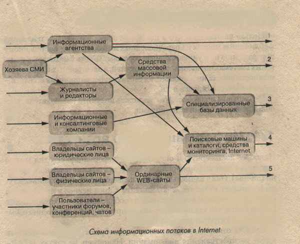 В левой части схемы озаглавлены основные существующие источники информации в Интернет, цифрами указаны источники той информации , которая проходя через информационный поток Интернет, как правило, предстает перед пользователями в более систематизированном виде.