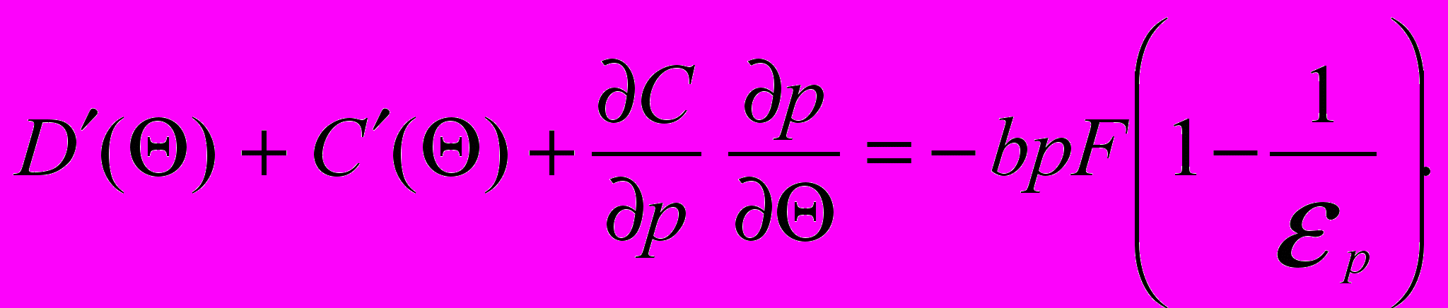 Если считать показатель b экзогенно заданной константой, от решения властей зависят только две переменные – р и F. Общественно оптимальные их значения находятся путем дифференцирования L по этим переменным: