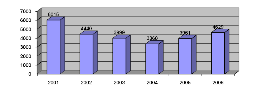 Как следует из данных статистики, в 2006 г. в Челябинской области количество зарегистрированных УФСКН РФ наркопреступлений практически не изменилось, что можно было бы назвать неплохой тенденцией. Однако более внимательное изучение показателей показывает, что удержать позицию предыдущего года удалось за счет увеличения регистрации преступлений, совершенных без цели сбыта (ст. 228 УК), нарушений правил легального оборота наркотиков (ст.228.2 УК РФ), незаконного культивирования (ст. 231), содержания наркопритонов (ст.232) и некоторых других. В то же время преступлений, связанных со сбытом наркотиков (ст.228.1), хищением или вымогательством (ст. 229), контрабандой (ст.188), легализацией (ст.174.1) стало регистрироваться меньше.