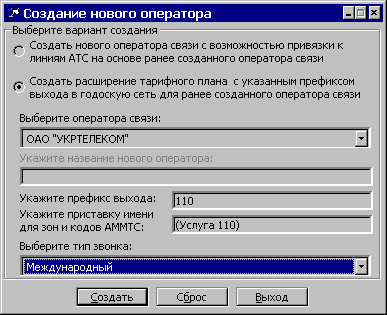 Во-втором случае («Создать расширение …»), Вы сможете расширить тарифный план выбранного оператора, добавив в список кодов автоматической междугородней и международной связи стран и городов коды с префиксом выхода на IP телефонию. Например, если Вы пользуетесь услугами оператора связи ФАРЛЕП (услугой IP телефонии 110), Вы можете расширить тарифный план этого оператора, который предварительно скопировали с шаблона УКРТЕЛЕКОМ, кодами международной связи по всем зонам с префиксом 110. Таким образом, после данной операции, в списке международных кодов тарифного плана оператора ФАРЛЕП добавится список всех старых кодов, но с цифрами 110 впереди, например: