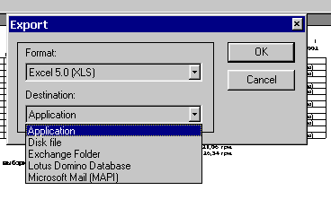 , после чего необходимо выбрать необходимый формат и вид приемника данных для экспорта из следующей формы: