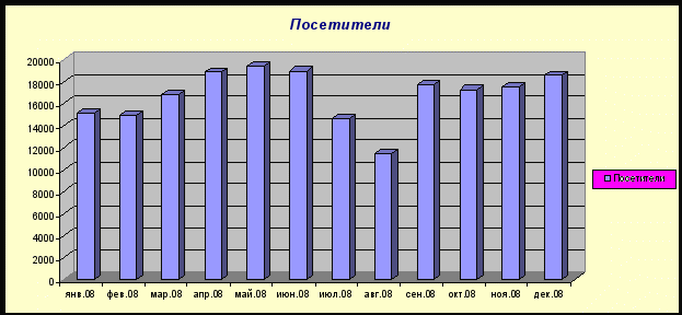 Распределение посетителей по месяцам в сравнении с 2007годом: