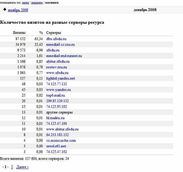 Распределение визитов по серверам ресурса (декабрь2008г)