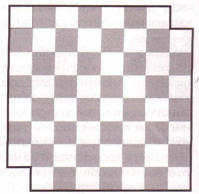 А вот такая задача: «Удастся ли плотно покрыть костями домино размером 2 х 1 доску 8 х 8 квадратов, из которой вырезаны противоположные угловые квадраты?» (рис. 3)
