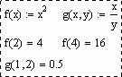 MathCAD допускает определение на листе новых функций от одного и более аргументов. Определение записывается в строчку в следующем порядке: