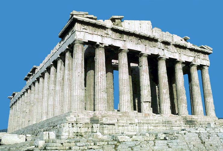 книгах о «золотом сечении» можно найти замечание о том, что в архитектуре, как и в живописи, все зависит от положения наблюдателя, и что, если некоторые пропорции в здании с одной стороны кажутся образующими «золотое сечение», то с других точек зрения они будут выглядеть иначе. «Золотое сечение» дает наиболее спокойное соотношение размеров тех или иных длин. Одним из красивейших произведений древнегреческой архитектуры является Парфенон (V в. до н. э.). Парфенон имеет 8 колонн по коротким сторонам и 17 по длинным. Выступы сделаны целиком из квадратов пентилейского мрамора. Благородство материала, из которого построен храм, позволило ограничить применение обычной в греческой архитектуре раскраски, она только подчеркивает детали и образует цветной фон (синий и красный) для скульптуры. Отношение высоты здания к его длине равно 0,618. Если произвести деление Парфенона по «золотому сечению», то получим те или иные выступы фасада. Другим примером из архитектуры древности является Пантеон. Известный русский архитектор М. Казаков в своем творчестве широко использовал «