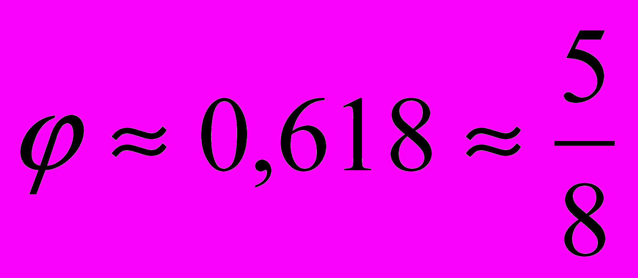 Ряд чисел 0, 1, 1, 2, 3, 5, 8, 13, 21, 34, 55 и т.д. известен как ряд Фибоначчи. Особенность последовательности чисел состоит в том, что каждый ее член, начиная с третьего, равен сумме двух предыдущих 2 + 3= 5; 3 + 5= 8; 5 + 8= 13, 8 + 13= 21; 13 + 21= 34 и т.д., а отношение смежных чисел ряда приближается к отношению золотого деления. Так, 21 : 34= 0,617, а 34 : 55= 0,618. Это отношение обозначается символом Ф. Только это отношение – 0,618 : 0,382 – дает непрерывное деление отрезка прямой в золотой пропорции, увеличение его или уменьшение до бесконечности, когда меньший отрезок так относится к большему, как больший ко всему.