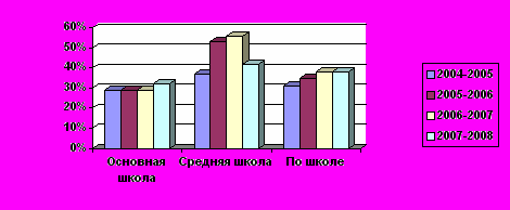 Сравнительный анализ успеваемости в 5-11 классах за период с 2004 по 2008 г.г.