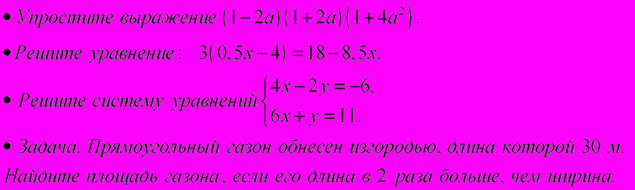 - Система линейных уравнений; решение подстановкой и алгебраическим сложением.