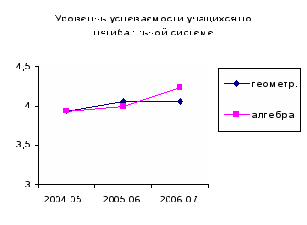 Учащимися разработаны проекты: в 2006/07 уч.г. проекты использования национального регионального компонента «Математическая интерпретация узоров чувашской национальной вышивки» и «Старинные русские и чувашские меры»; в 2007/08 уч.г. проекты экологического воспитания на уроках математики «Математика в мире животных» и «Математический заповедник»; мультимедийные проекты «Неделя математики», «Пространственные тела», «Государственные символы РФ и ЧР» и т.д., с которыми учащиеся участвовали в разных конкурсах и конференциях (пункт 2.2 аналитической справки).