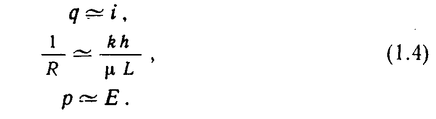 налоговые резистивно-емкостные сетки обычно называют электрическими анализаторами (электроинтеграторами), в которых для создания электрической модели нефтяного пласта применяют законы электротехники и гидравлики. Анализируя изменения электрических параметров во времени при различных воздействиях, с помощью простых переводных коэффициентов можно оценить процесс разработки пласта. Аналогия между различными системами видна из уравнений, приведенных ниже.