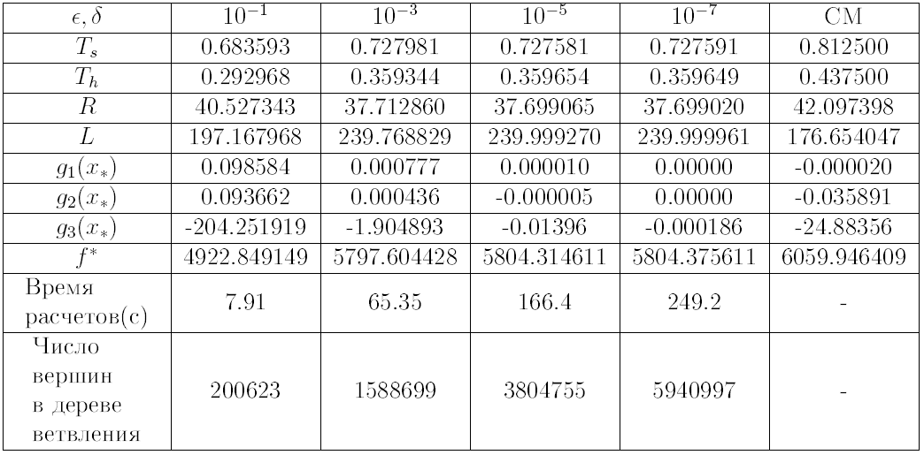 Для вычислительного эксперимента была выбрана тестовая задача из работы [4], состоящая в расчете формы котла, при которой достигается минимальная стоимость при условии соблюдения технологических ограничений. Математическая формулировка задачи и чертеж котла приведены на Рис 2. В таблице 1 приведены результаты расчетов для различных значений величин