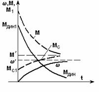 Легко обнаружить связь зависимостей w(t) и М(t) с динамической характеристикой привода: исключив время t из уравнений w(t) и М(t), мы получим динамическую характеристику.