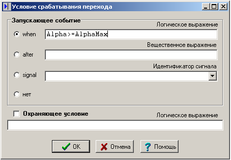 Всі введені нами переходи за замовчуванням є безумовними, тобто вони спрацюють негайно, як тільки вихідний вузол стане поточним. Таким чином, робота моделі, що задається картою поведінки, показаної на Рис 5.11, почнеться і закінчиться «в одну мить» під «тимчасової щілини».