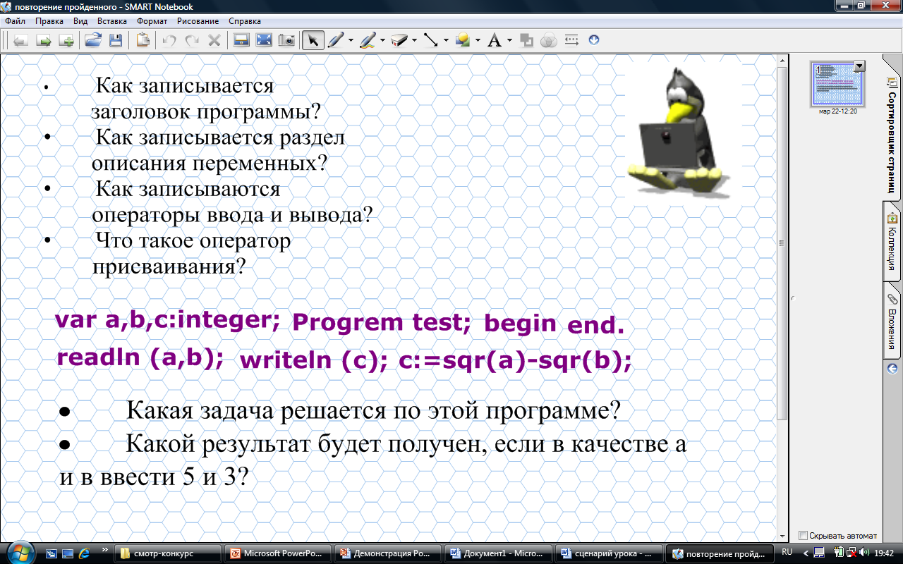 - Правила представления данных и операторов на Паскале;