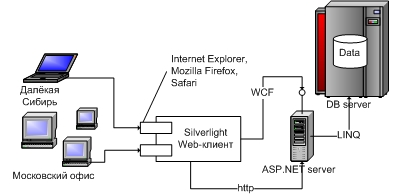 Настольные приложения подняли планку качества от уровня неэргономичных решений до действительно больших высот в смысле функциональности, технических возможностей, удобства и интерактивности работы с пользователем. Но мир не стоит на месте – всё более и более критичной стала возможность удалённой работы с центральным сервером. Простой пример: топ-менеджер проводит большое время в командировках, но хочет при этом не терять доступ к системе управления ресурсами своего предприятия. В таком случае появляется понятие трёхзвенной архитектуры и варианты решения, когда есть полнофункциональное настольное приложение и плюс к нему простой web-клиент, либо даже только настольное приложение, но которое работает не напрямую с базой, а через web-сервис (3е звено).