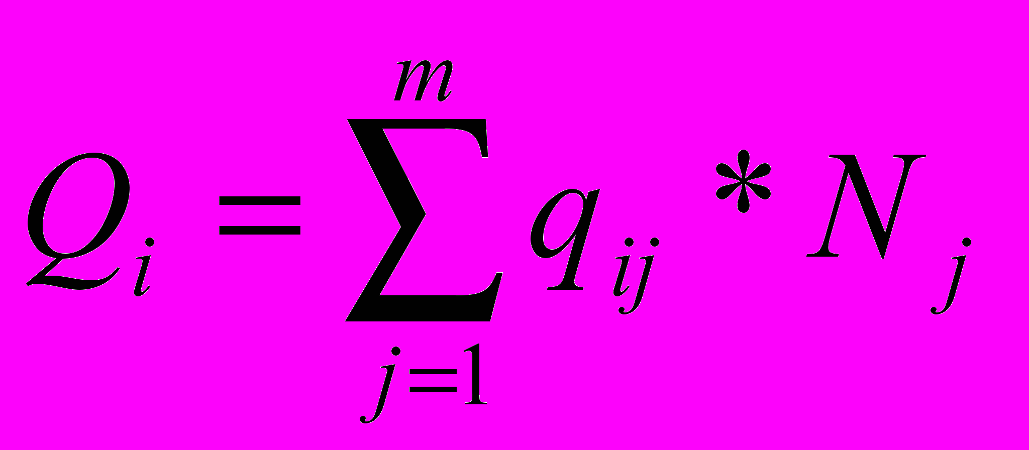 , (36)где: qij – норма расхода i - го материала на единицу j – ой продукции;