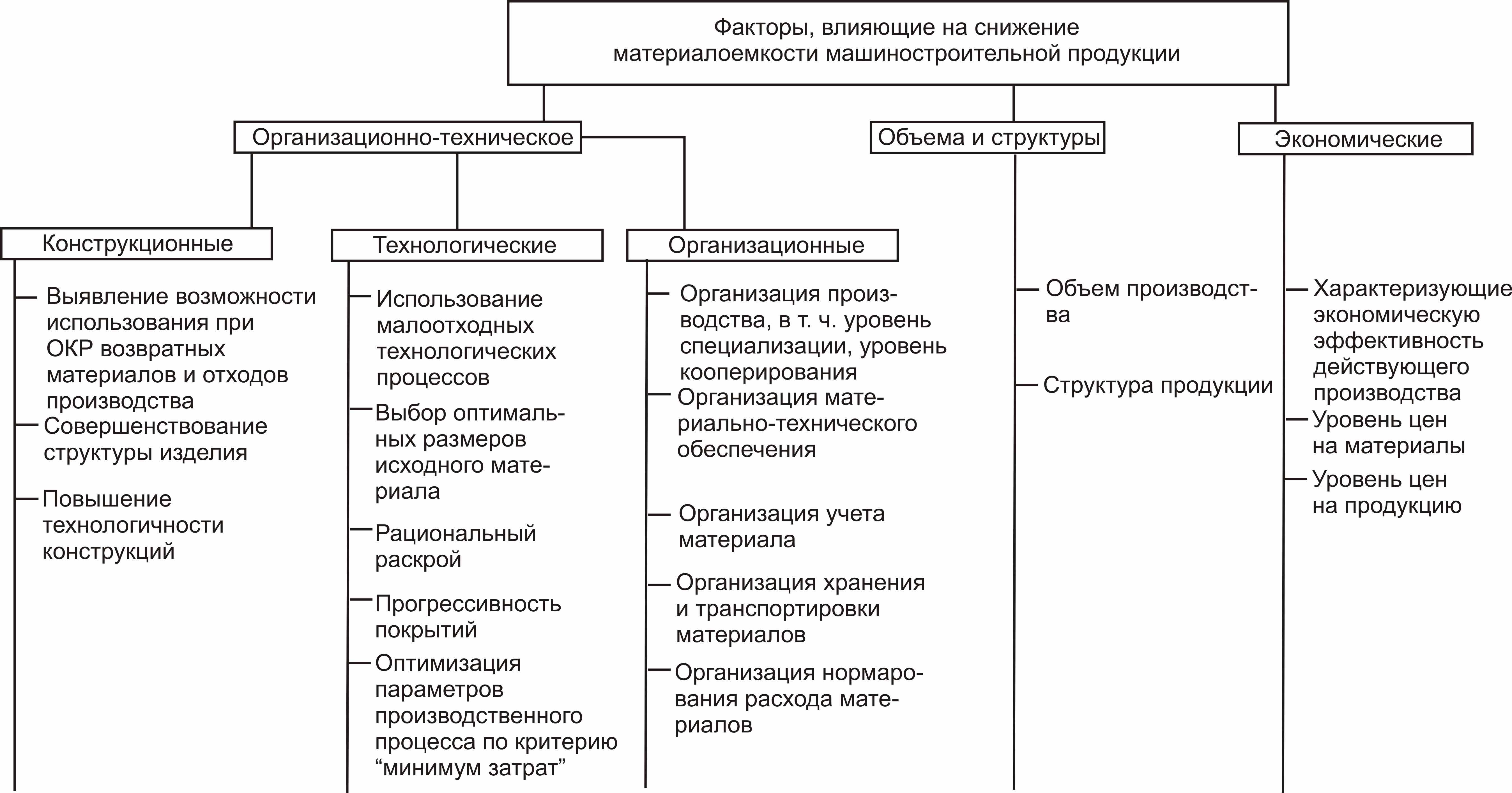 Классификация факторов, влияющих на снижение материалоемкости продукции, является важнейшим условием для установления научно обоснованного уровня материалоемкости продукции машиностроительных предприятий и планирования его снижения.
