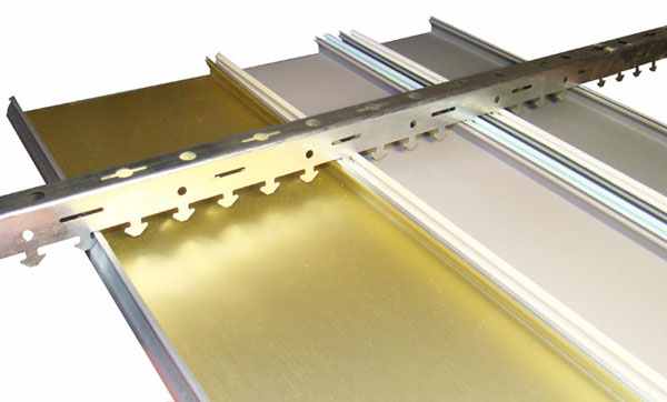 Подвесная система представляет собой конструкцию из несущих профилей, подвесов, заполняющего профиля, называемого плинтусом. Несущий профиль для реечных потолков выполнен в виде планки со специальными пазами, служащими для крепления панелей. Материалами для его производства служат алюминий или сталь толщиной 0,6-0,7 мм. Совершенно не подвержены коррозии, что дает неоспоримое преимущество при появлении влаги от ваших соседей сверху - потолок совсем не пострадает. Рейки имеют ширину 100 или 150 мм. , длину 3 или 4 метра, и могут комбинироваться со вставками (декоративные полоски шириной 25 мм). Вставки дают большой простор творчеству при подборе дизайна потолка. Так же одним из неоспоримых преимуществ является малые величины, "съедаемые" от "чернового" потолка. Эта величина составляет всего 3,5см.
