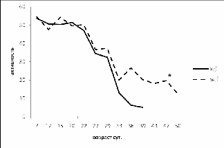 на продолжительность жизни и возрастное изменение физиологических показателей жизнедеятельности – плодовитости и локомоторной активности.