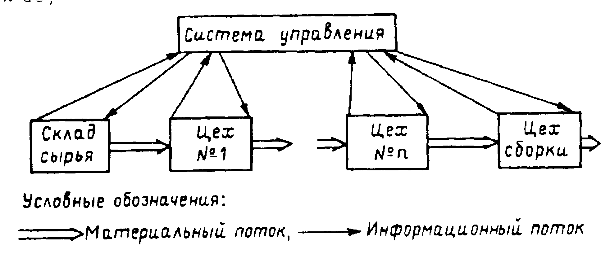 Другими словами, процесс производства сформирован централизованно. В системах толкающего типа каждый технический агрегат, каждый передел производства имеет информационные и управляющие связи с центральным органом управления (см. рис. Ниже).