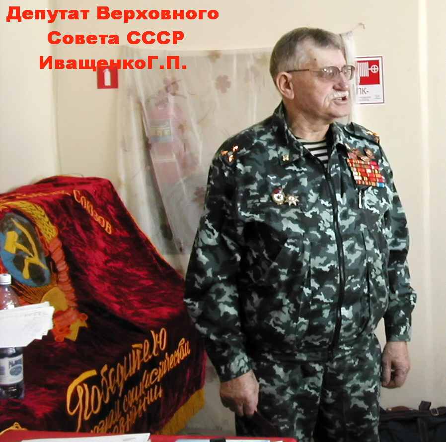 Теперь очередь за нами с вами: лучше умереть за Родину, за Советскую власть, чем в постели и на коле-нях. Со своей стороны, мы, «настоящие, советские офи-церы» (как поется в гимне советских офицеров, автором и исполнителем которого является советский, русский бард, член МССО, капитан II-го ранга Харчиков А.А.) кля-нёмся, что выполним свой долг перед Советской Отчизной. Мы возродим и восстановим Советский Союз. Советский Союз! Советский Союз! Советский Союз! (аплодисменты).