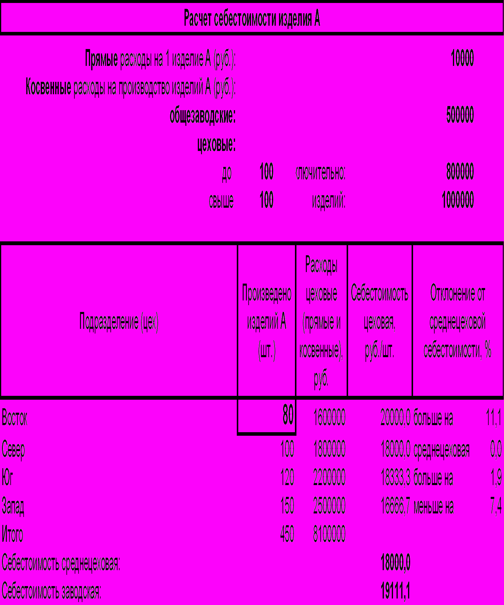 | 3 | Подразделение | Изделие А | Изделие Б | Всего | Доля изделия А в подразделении, % | Доля подразделения в фирме, % |